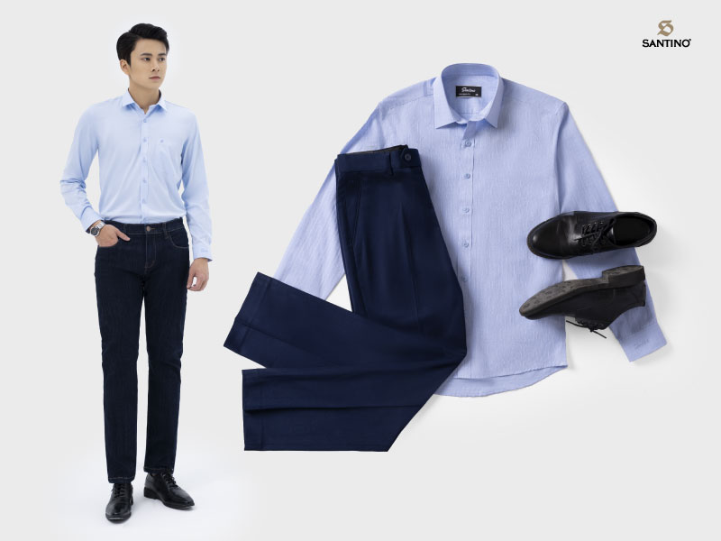 Để có một outfit hoàn hảo hơn, các quý ông cần lựa chọn quần và các phụ kiện phù hợp với áo sơ mi. Phối áo sơ mi nam cùng quần âu cho phong cách lịch lãm, cuốn hút. Khi kết hợp sơ mi cùng quần jeans cho outfit phong cách, nam tính hay trẻ trung, hiện đại khi mix quần suông kaki cùng áo sơ mi nam dài tay. Bạn có thể lựa chọn thêm một đôi giày tây hoặc thể thao, phối cùng một vài phụ kiện thích hợp như thắt lưng, đồng hồ, túi,...để tạo điểm nhấn cho outfit.