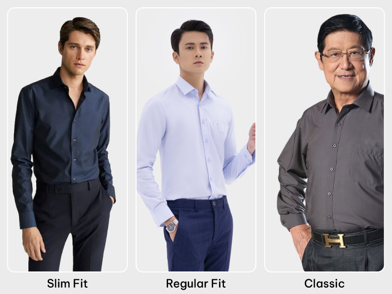 Áo sơ mi nam có 3 dáng áo phổ biến là Slim Fit/ Regular fit/ Classic