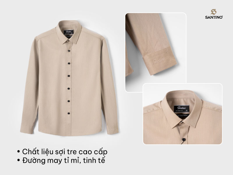 Một trong những chất liệu áo sơ mi nam được ưa chuộng nhất hiện nay chính là vải sợi tre. Sợi tre kết hợp cùng microfiber cho chất liệu vải có ưu điểm như bề mặt mềm, mịn, thoáng mát, kháng khuẩn, khử mùi và chống tia UV. Chất spandex giúp áo có độ co giãn nhẹ để người mặc thoải mái khi sử dụng hoặc vận động mạnh.